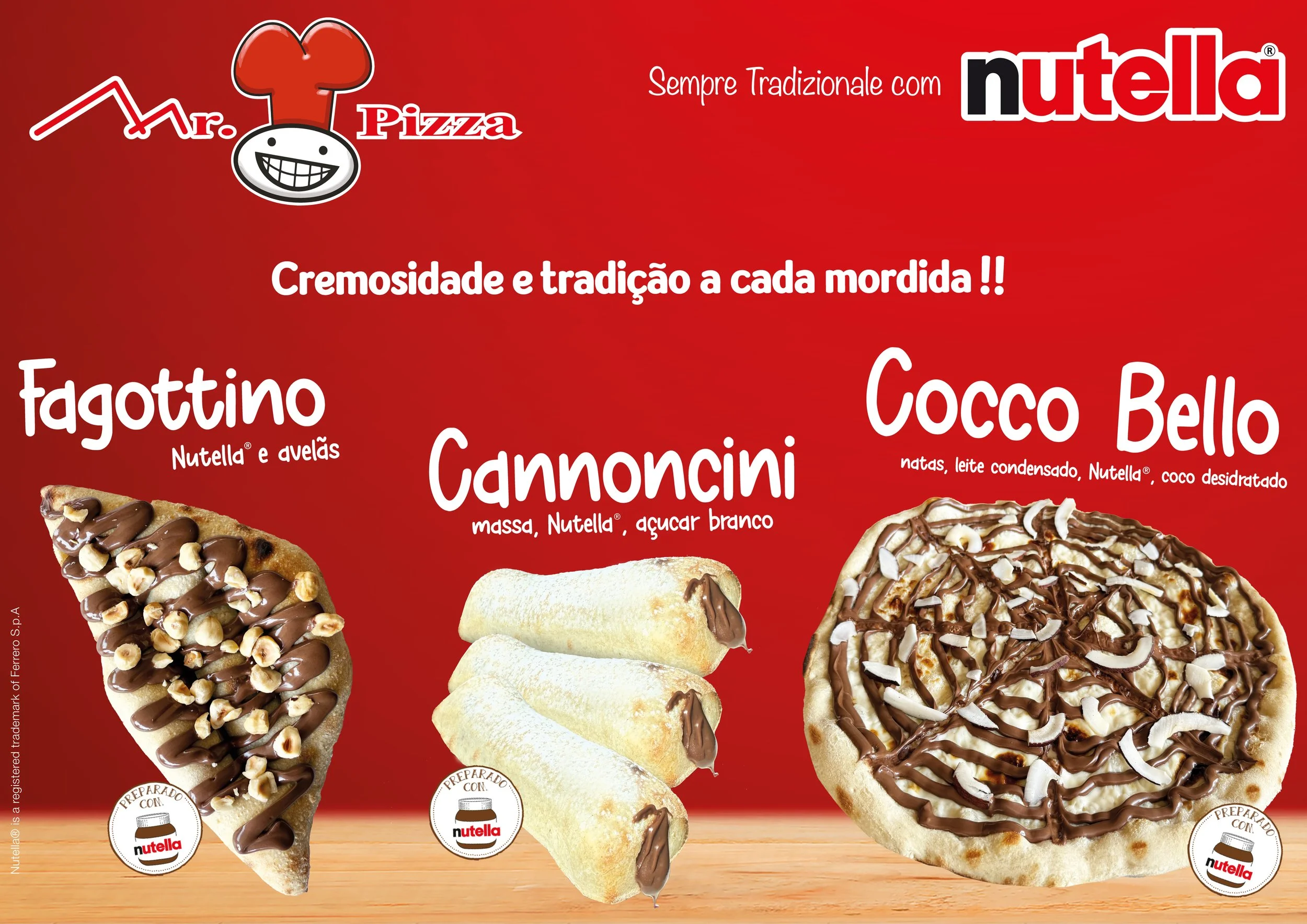 O Mr.Pizza® uniu-se ao Grupo Ferrero® para criar três novidades irresistíveis com o produto Nutella®. Cremosidade e tradição a cada mordida! Apresentamos os novos artigos: