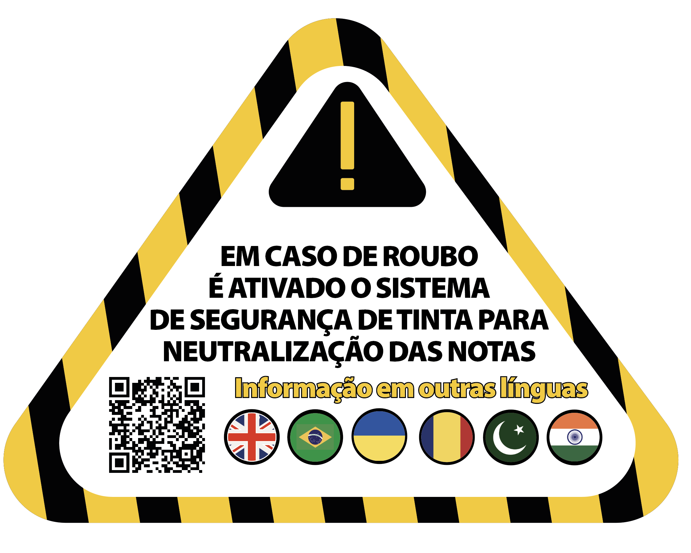 EM CASO DE ROUBO, O SISTEMA DE SEGURANÇA DE TINTA É ATIVADO PARA NEUTRALIZAR AS NOTAS